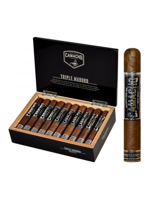 The Camacho Triple Maduro 11/18 cigar is a bold and robust smoke known for its unique shape. It’s a medium to full-bodied cigar. The flavor profile has deep notes of cedar, roasted nuts, and black pepper. The wrapper is from Mexico. The binder is from Honduras and the filler leaves is from Brazil, Dominican Republic and Honduras.