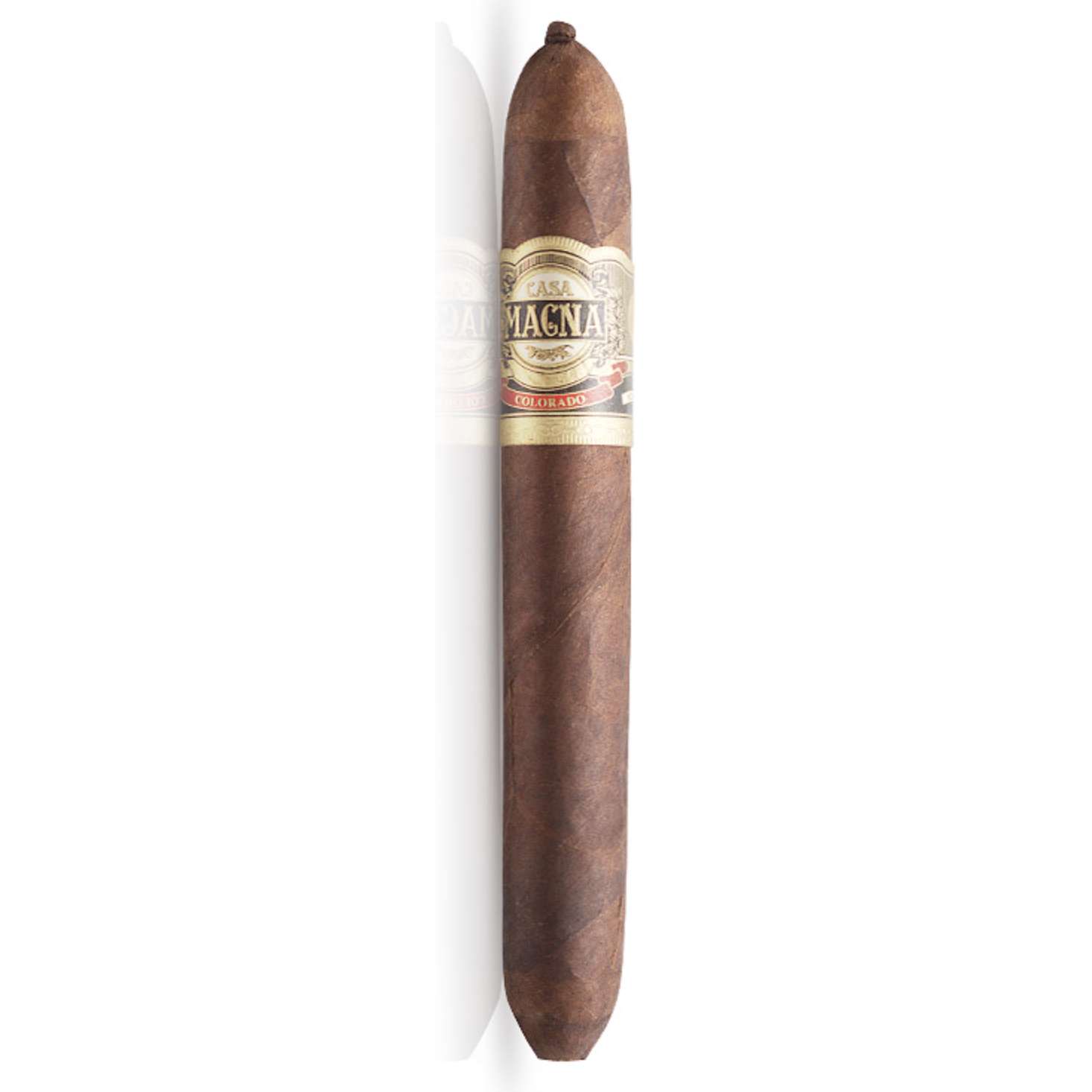 This potent stick has a rich complexity with pleasing notes of cedar, coffee, cinnamon and a toasty finish. It is a Nicaraguan puro with a reddish maduro wrapper. Handmade in Nicaragua at the Plasencia Cigars factory, the blend for Casa Magna Colorado Robusto was created by renowned master blenders Manuel Quesada and Nestor Plasencia.