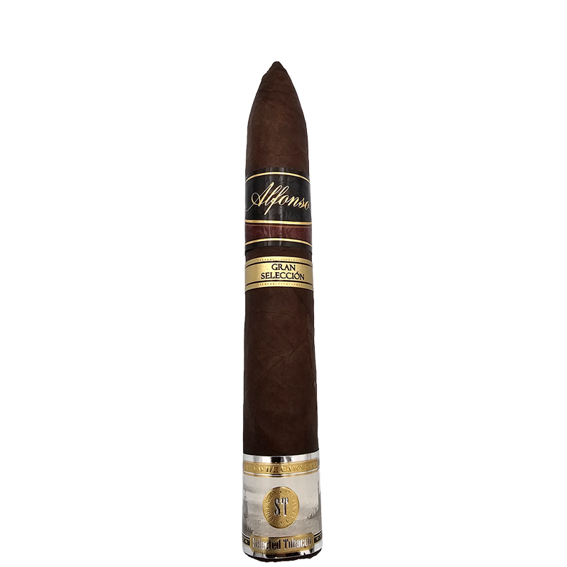 The Alfonso Gran Selecci?n builds on the success of Alfonso A?ejo, offering a richer, darker profile with an Ecuadorian Habano wrapper, Peruvian binder, and Dominican-Nicaraguan fillers. Like all Selected Tobacco cigars, it undergoes a meticulous five-year aging process in cedar-lined rooms with controlled humidity cycles. Its final maturation in French Oak aging rooms enhances complexity?a technique also used for Alfonso A?ejo and Byron 1850.