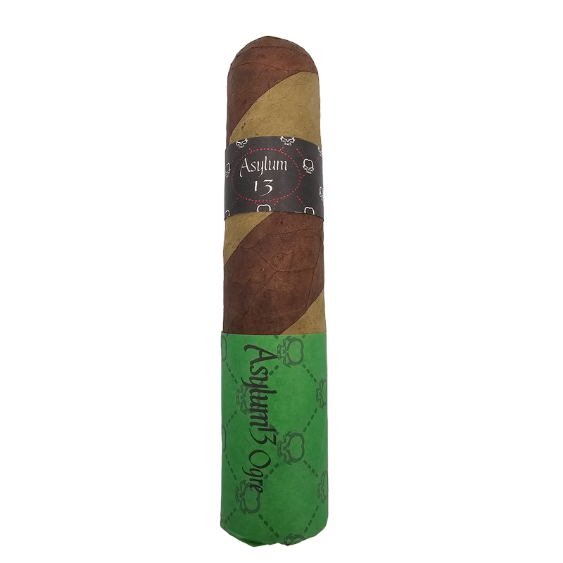 The Asylum 13 Ogre is a Nicaraguan Puro blended by Christian Eiroa that stands out from it’s cousin the original Asylum 13 with it’s barber pole style wrapper. Nicaraguan Habano and Candela leaves cover the same core tobaccos for a unique flavor profile of rich earth, light spicee, sweet tobacco and a mild vegetal note.