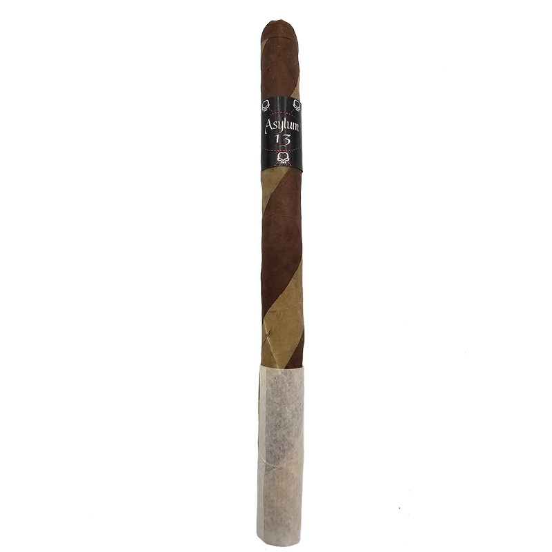 The Asylum 13 Ogre is a Nicaraguan Puro blended by Christian Eiroa that stands out from it’s cousin the original Asylum 13 with it’s barber pole style wrapper. Nicaraguan Habano and Candela leaves cover the same core tobaccos for a unique flavor profile of rich earth, light spicee, sweet tobacco and a mild vegetal note.