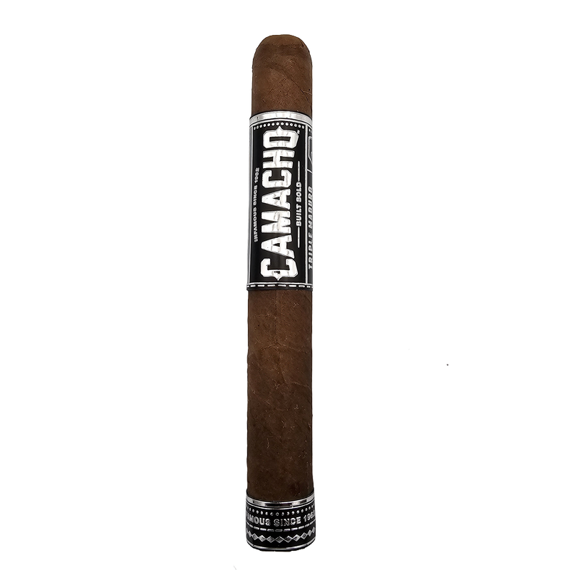 The Camacho Triple Maduro cigar is a bold and robust smoke. It’s a medium to full-bodied cigar. The flavor profile has deep notes of cedar, roasted nuts, and black pepper. The wrapper is from Mexico. The binder is from Honduras and the filler leaves is from Brazil, Dominican Republic and Honduras.