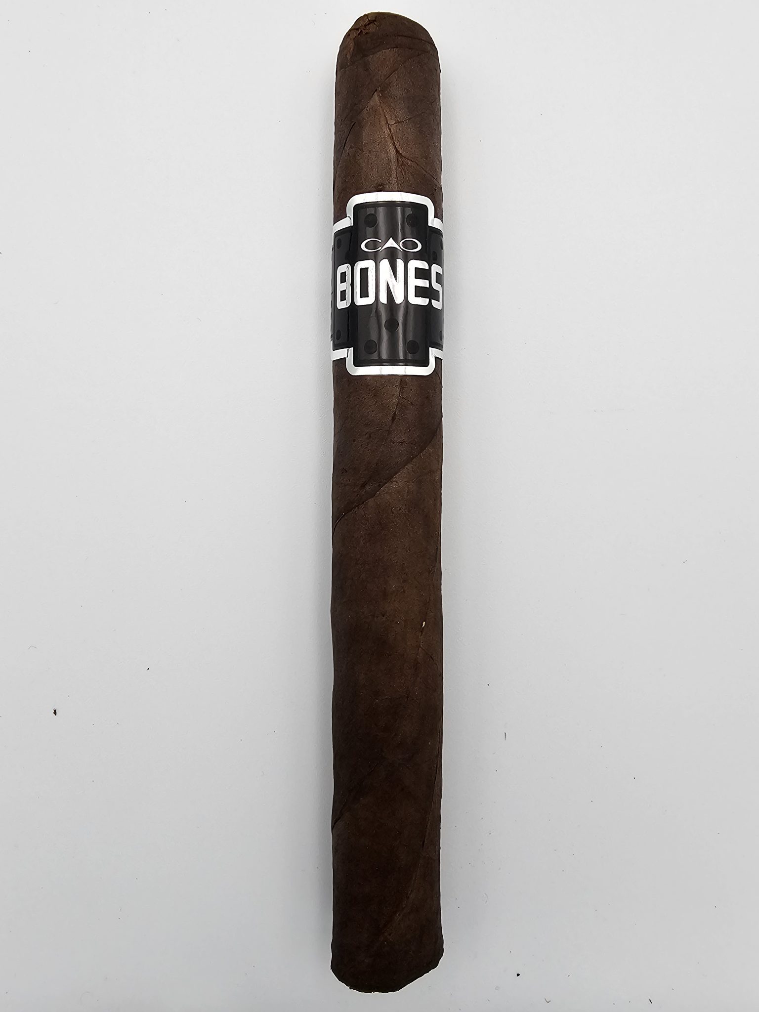 CAO Bones employs a dark Connecticut broadleaf wrapper to enclose a Connecticut shade binder and a filler blend of Nicaraguan tobacco, Dominican Piloto Cubano, and Honduran leaf. This combination results in a consistently burning, medium- to full-bodied profile, offering a complex, full-bodied smoke with balanced notes of wood, nuts, coffee, and vanilla.