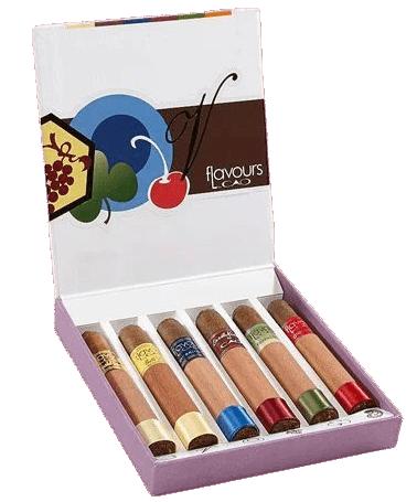 The CAO Flavours 6-Cigars Sampler offers a delightful selection of flavored cigars crafted by CAO. This sampler typically includes a variety of aromatic cigars, each infused with unique flavors like cherry, vanilla, chocolate, and other delicious essences. These cigars are known for their smooth draws, pleasant aromas, and the fusion of rich tobacco with nuanced, complementary flavors, providing an enjoyable smoking experience