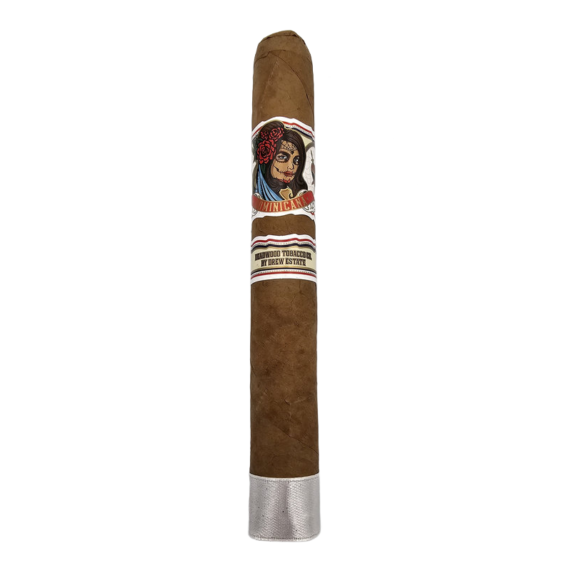 The Deadwood Dominicana Pequena is a short, mild-to-medium-bodied cigar made by Drew Estate for the Deadwood Tobacco Co. Unlike the other maduro-wrapped Deadwood “ladies” like Sweet Jane and Fat Bottom Betty, the Dominicana line offers a lighter flavor profile with a Connecticut Shade wrapper over a Mexican San Andres binder and Dominican fillers. It’s sweet tip compliments the creamy blend with prominent notes of honey, cocoa, hay, and a buttery finish.
