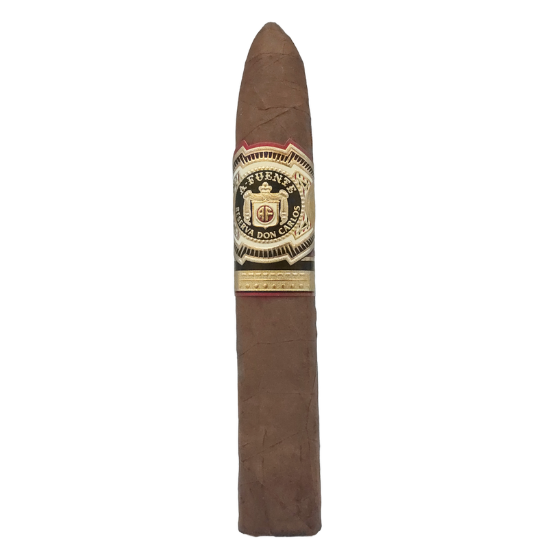 The Don Carlos Eye of the Shark Cigar is a full body with delicious notes of vanilla, cream and floral. It has a dark, savory African Cameroon wrapper, and the binder and filler come from the Dominican Republic and is handmade in the Dominican Republic. The blend is made of hand selected vintage tobaccos that have been aged for at least ten years. This limited release cigar is named after Don Carlos Fuente, Sr., a legendary cigar crafter and the Fuente family patriarch.