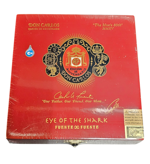 The Don Carlos Eye of the Shark Cigar is a full body with delicious notes of vanilla, cream and floral. It has a dark, savory African Cameroon wrapper, and the binder and filler come from the Dominican Republic and is handmade in the Dominican Republic.