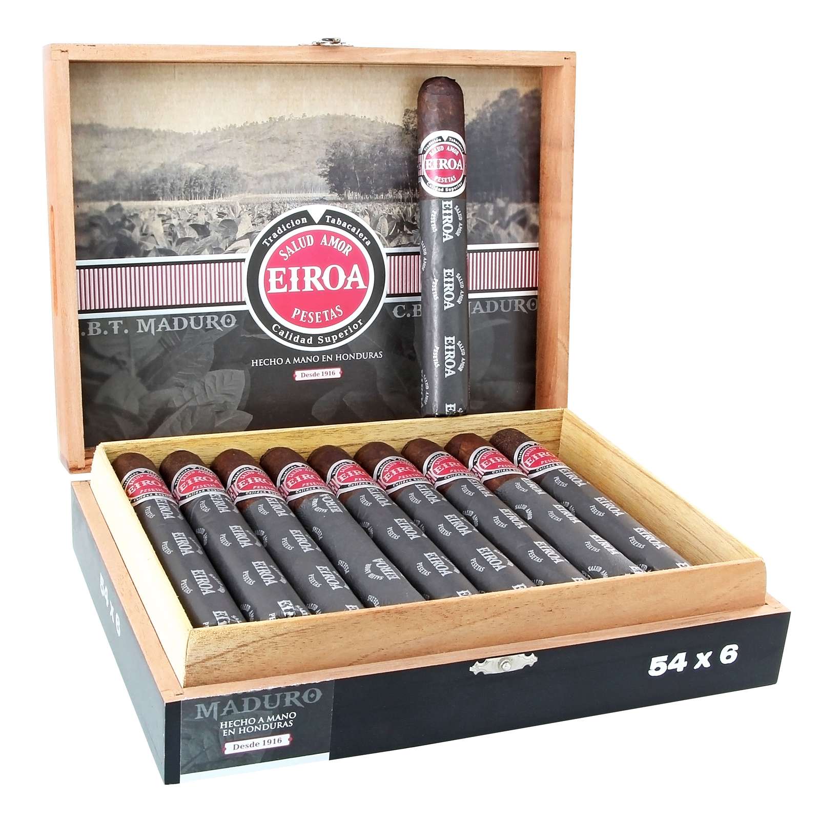 Hailing from Eiroa?s El Aladino factory in Honduras, CBT Maduro makes use of 100% maduro leaves ? the wrapper, binder, and filler are all maduro leaves harvested from only the plant?s top primings. An extremely difficult-to-blend combination, but Eiroa nailed it?again. CBT Maduro is smooth and ultra-rich with hearty, charred notes of wood, pepper, espresso, dark chocolate, and a long, bold, and meaty finish. It?s unique, it?s complex, it has flavor to spare. Indeed, if you like rich n? bold cigars, Eiroa CBT Maduro easily sits at the top of the list.