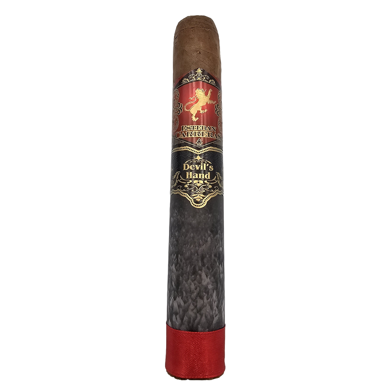 The Esteban Carreras From The Devil’s Hand is an exceptional Naguan puro, boasting an oily, mouthwatering Corojo maduro wrapper. It is filled with premium leaf from the finest tobacco-growing regions of Nicaragua. When lit, the Devil Hand delivers flavorful, medium full-bodied smoking experience with notes of black pepper, wood, and a creamy smoke.