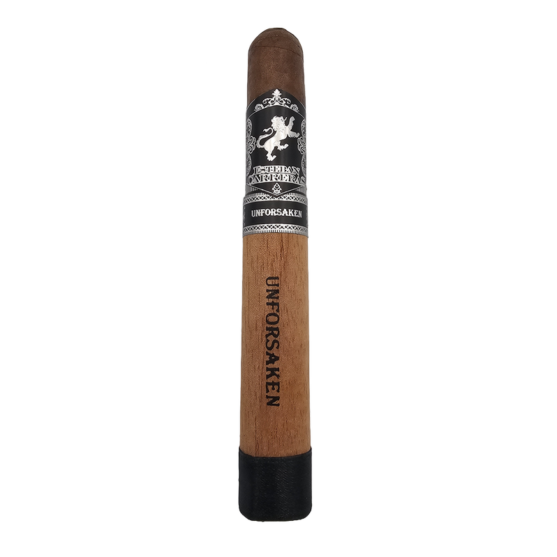 The?Esteban Carreras Unforgiven Toro Grande comes pretty dressed up with a primary band, secondary band, cedar sleeve and black ribbon foot band, meaning that only a small bit of the cigar is visible. It takes a bit of work to get the cigar ready for smoking?more on that in the notes below?but once the cedar sleeve is removed, a uniformly dark brown wrapper is revealed, very smooth to the touch with an almost waxy texture on the fingers. The cigar has some give in spots, but visually it appears rolled well, with the occasional cap leaving something to be desired.?