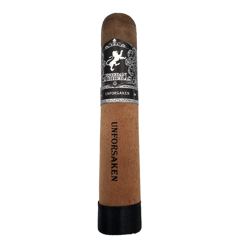 The Esteban Carreras Unforsaken is wrapped in an Ecuadorian Sumatra leaf over a premium blend of Nicaraguan binder and filler tobaccos. It’s medium to full bodied, with notes of wood, leather, coffee bean, and spices, backed by a slight smoky sweetness imparted from the remnants of the 18-year old rum barrels.