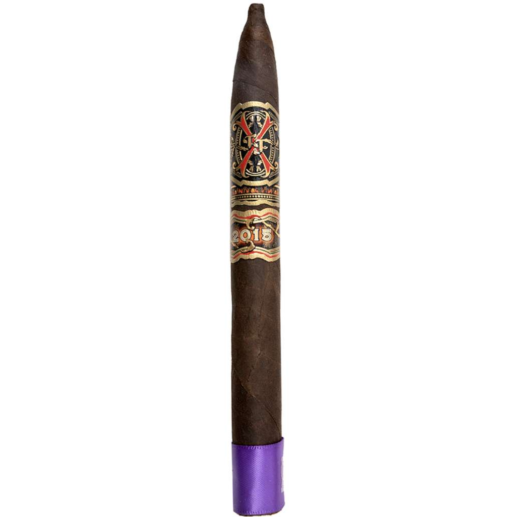 Fuente Forbidden Ffox Purple Rain Maduro is a rare and limited edition cigar produced by Arturo Fuente Cigar Co. in collaboration with Prometheus. It is a part of the Heaven and Earth Series of the Fuente Aged Selection. The cigar is a 6 7/8 x 44 lonsdale with a hybrid torpedo/nipple head