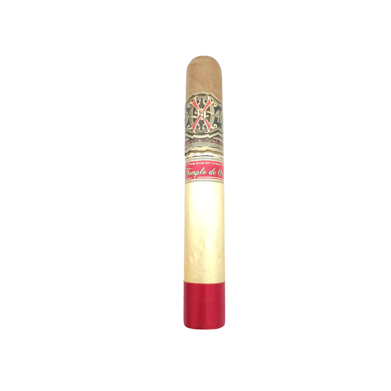 The newest release in the Forbidden family of Opus X the Templo de Oro is straight from the Fuente family factory in the Dominican Republic. The blends aren’t revealed at this time but traditionally the Opus X and by extension the Forbidden are Dominican puros utilizing the highest quality tobacco Fuente produces. The mildest of the Opus that have been released it’s creamy with a sweet floral aroma and notes of baker’s spices and cedar.
