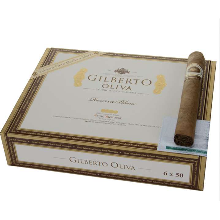 A mild smoke with a creamy profile, hints of spice, and a nutty and coffee finish. Its Ecuadorian Connecticut Shade wrapper drapes an Ecuadorian binder and aged Nicaraguan long-filler leaves. Handmade in Nicaragua. The Gilberto Reserva Blanc was crafted to offer a mild smoking experience without sacrificing flavor.