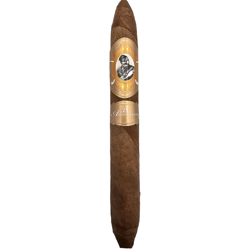 The Gurkha 35th Anniversary commemorates Gurkha?s 35th year in the premium cigar industry. A brand-new project showcased at the 2023 PCA Convention trade show, the cigars are made in the Dominican Republic by El Artista. These cigars debut in a 150-count commemorative humidor with 75 cigars in 3 different shapes and sizes (25 of each configuration). The cigars inside are even better! A beautiful Ecuadorian Habano wrapper covers the 35th Anniversary with an Indonesian binder and Criollo 98 Nicaraguan Estel? fillers. The blend delivers a rich flavor profile that’s complex and yet smooth with a medium bodied profile.