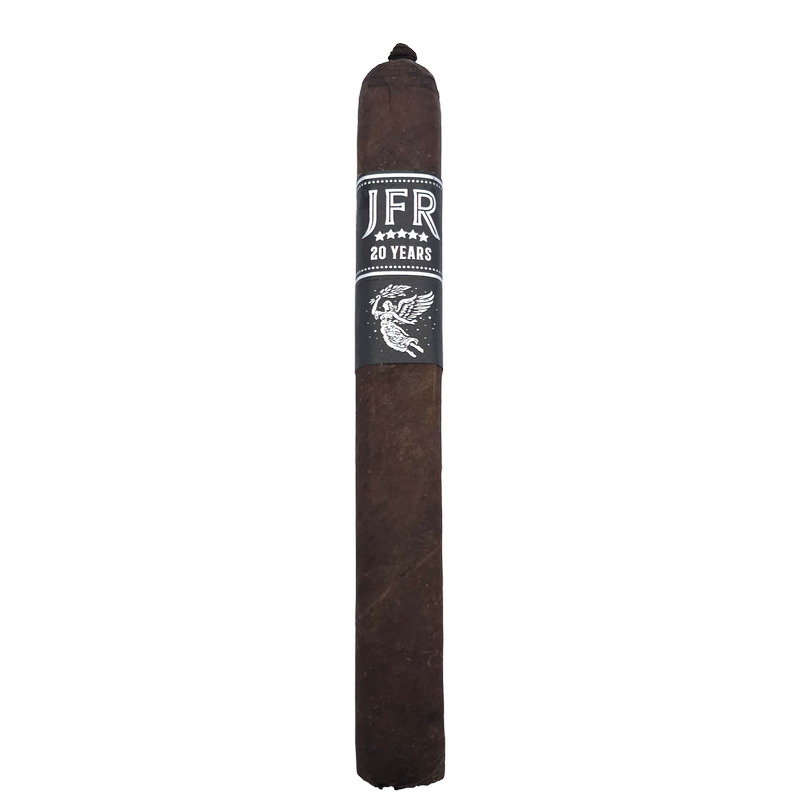 The JFR 20th Anniversary Maduro Super Toro BP 6½×52 is a celebration of two decades of bold tobacco craftsmanship from Aganorsa Leaf. Box-pressed with a dark San Andrés Maduro wrapper over rich Nicaraguan binder and filler, this cigar delivers a medium-full bodied experience. Expect upfront spice and pepper, followed by deep cocoa and earthy leather tones. The unfinished foot and pigtail cap add rustic charm. This is for the smoker who wants depth, flavor, and history in one big draw