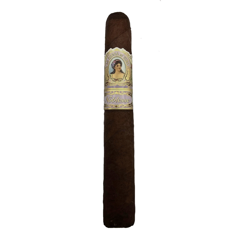 A dark and lustrous San Andr?s Oscuro wrapper leaf shimmers over coveted reserves of the finest premium Nicaraguan tobaccos cultivated on Garcia family estates in Estel?, Jalapa, and Namanji. Every leaf of wrapper, binder, and filler harvested for Noblesse matures during a patient triple fermentation to achieve optimal flavor and aroma. Noblesse is meticulously rolled in entubado fashion and finished with a traditional Cuban-style triple cap. Luxurious notes of dark chocolate lava cake, espresso bean, and Turkish fig emanate throughout a voluptuous, full-bodied smoke with accents of Himalayan pink salt and black peppercorn.