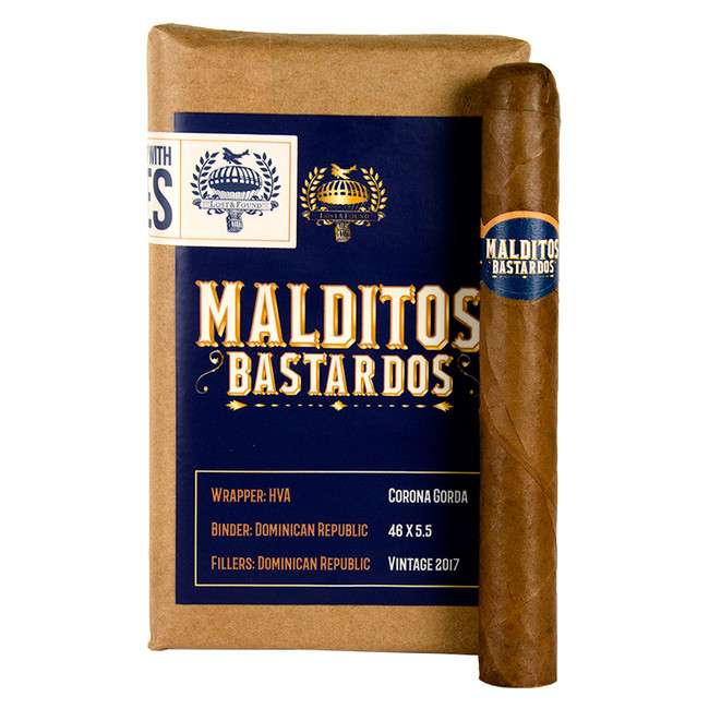 The Lost and Found Malditos Bastardos cigars offer a captivating blend from Robert Caldwell’s Lost and Found collection. These cigars feature an Ecuadorian Habano 2000 wrapper, a Sumatran binder, and assorted Nicaraguan fillers. First rolled in 2014, they were rediscovered in the Dominican Republic. Expect a balanced smoke with creamy chocolate undertones, accented by nutmeg and cinnamon, leading to a spicy finish. The flavor profile also includes cedar, oak, cream, spice, pepper, and toasted nuts.