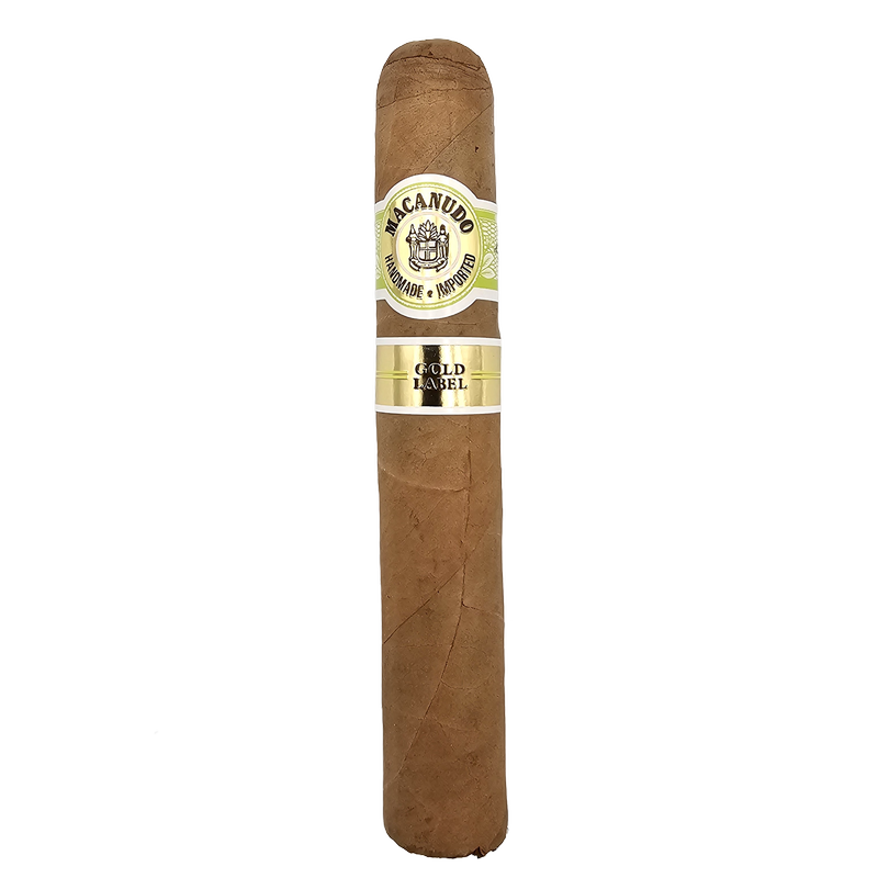 Macanudo Gold Label is our limited edition line of premium cigars featuring exceptional Connecticut Shade leaves from only the first and second primings. This distinction means the leaves are exposed to less sunlight and thus retain more natural flavors as well as a remarkable color and texture. This ?Capa Especial? (special wrapper) is rolled in combination with Mexican San Andr?s binder and Piloto Cubano and Mexican fillers all of which were also taken from only the first and second primings. The resulting cigar is not only unique, but also exceptionally sweet and smooth with a nutty, creamy profile.