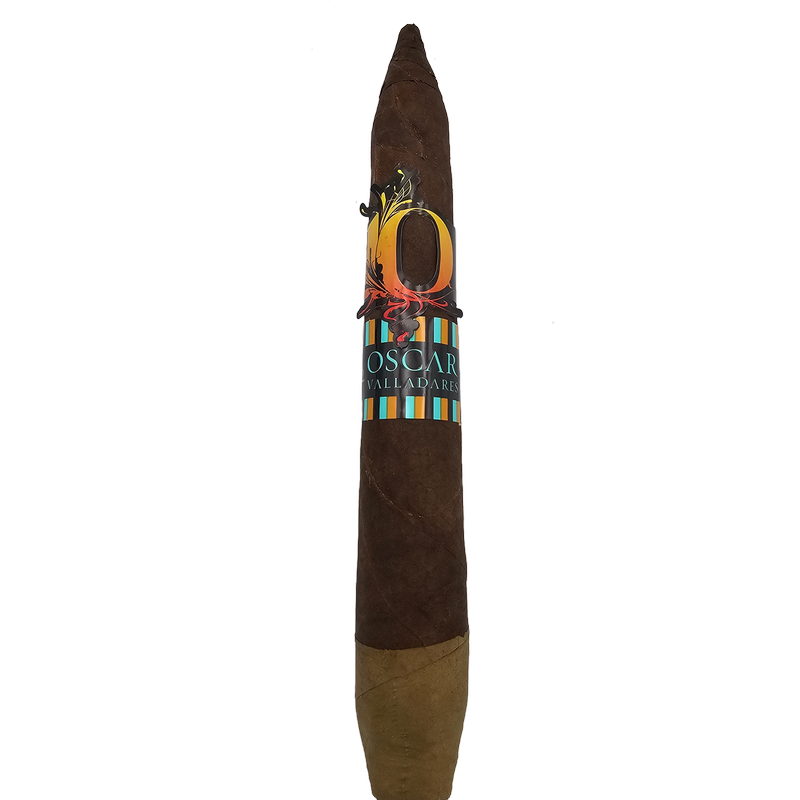 The blend features not one ,but two wrappers: a Mexican-grown EMS with a candela leaf placed at the foot of the cigar. Underneath is a Honduran binder and Nicaraguan long filler tobacco, both aged for at least five years. Salomon is very large, (7 x 52 ) figurado with a pointed, head, bulbous foot, and a nipple tip, that?s very hard to roll, demanding a lot of skill, time, and attention to detail. With a green foot, the cigar starts off with some herbal tones, soon followed by rich, medium-to-full bodied flavors of leather, cinnamon, spice, and cocoa, when the flame hits the darker part of the wrapper.
