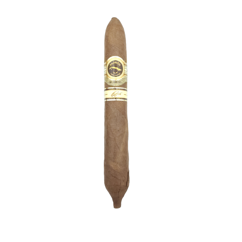 The Padron 60th Anniversary cigars celebrate six decades of excellence, epitomizing Padron?s unparalleled craftsmanship. These 6 1/2″ x 56 perfecto cigars deviate from their traditional box-pressed design, adopting a unique, rounded form. Each cigar is meticulously hand-rolled by seasoned artisans, featuring distinctive tapers at both the head and foot, reminiscent of a Cuban Salomon. Encased in individual wooden coffins. The Padron 60th Anniversary are Nicaraguan puros with tasting notes of cocoa, cedar, molasses, cinnamon, and nutmeg unfold throughout this smooth, medium to full bodied smoke.