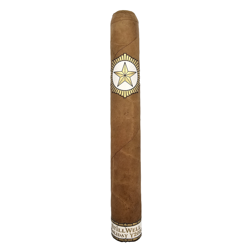 The Dunbarton Stillwell Star Holiday2024 is wrapped in a smooth Ecuadorian Connecticut Shade wrapper that provides a clean start to the smoking experience. Beneath it lies a Mexican San Andr?s binder, adding depth and complexity. The filler combines traditional Nicaraguan tobaccos with aromatic pipe tobaccos from Cornell & Diehl, including Red Virginia, Golden Virginia, and Cavendish burley, curated for balance and indulgence. The flavor profile includes notes of baking spices, sweet cedar, and caramel, with the pipe tobaccos adding touches of vanilla, citrus zest and sugarcane.