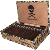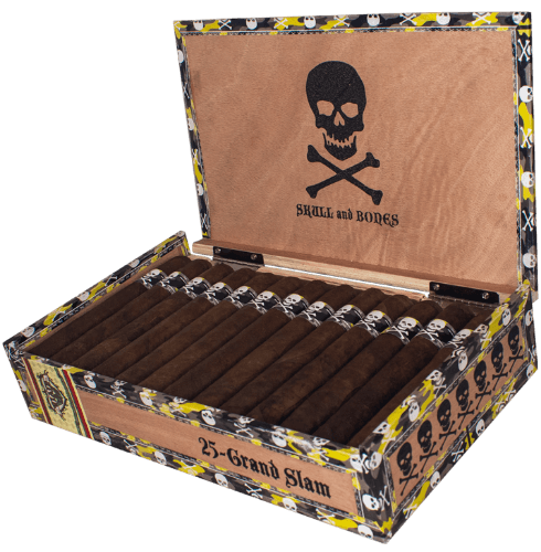 The Viaje Skull And Bones Grand Slam Camo Yellow is a limited Skull and Bones release from Viaje, handcrafted in Nicaragua in a Super Toro vitola with a Nicaraguan Corojo 99 wrapper and a traditional cap. Medium-full in strength, expect full-flavored and broad-shouldered, the Yellow edition layers pepper, earth, roasted wood and a subtle sweet note.